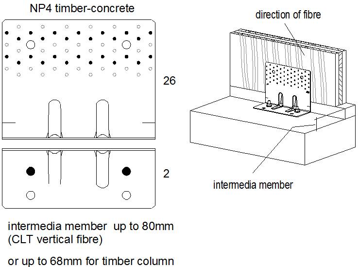 Les valeurs caractéristiques données dans le tableau ci-dessus sont des valeurs simplifiées basées sur une hypothèse de durée de chargement et de classe de service (charge court terme et classe de service 2, kmod = 0,9 suivant EC5 (EN1995)). Pour d'autres durées de chargement et classes de service, veuillez vous reférer à l'ETE-06/0106.