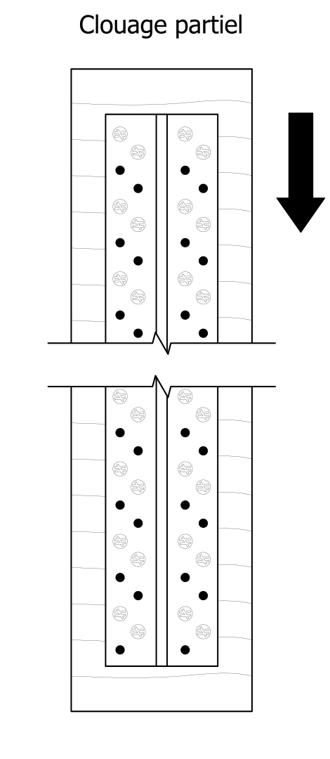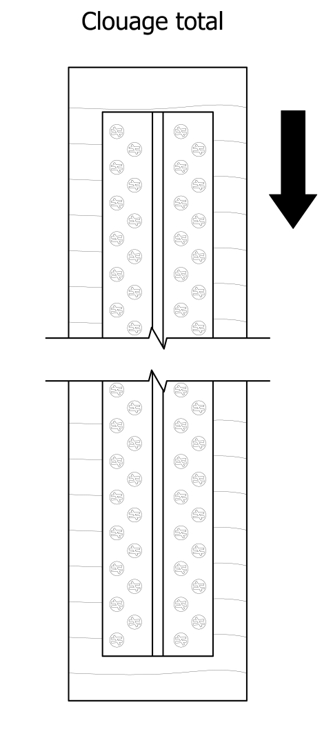 Les perçages dans la solive doivent être réalisés suivant le plan de clouage défini dans notre ETE.