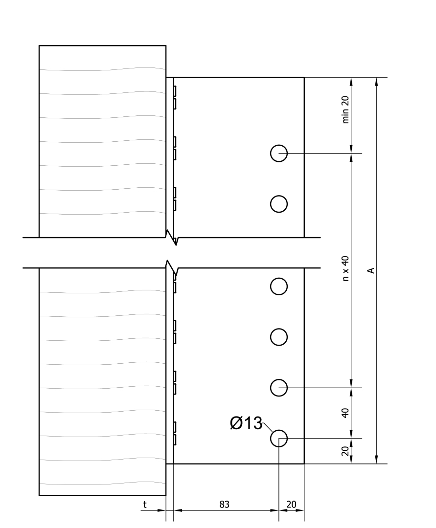 - Percer en même temps le bois et l'âme de l'étrier en prenant en compte les préconisations de perçages sur l'âme du BTALU. Le perçage du bois peut être effectué en amont et ainsi servir de guide pour la perforation des trous de broches dans l'âme de l'étrier,