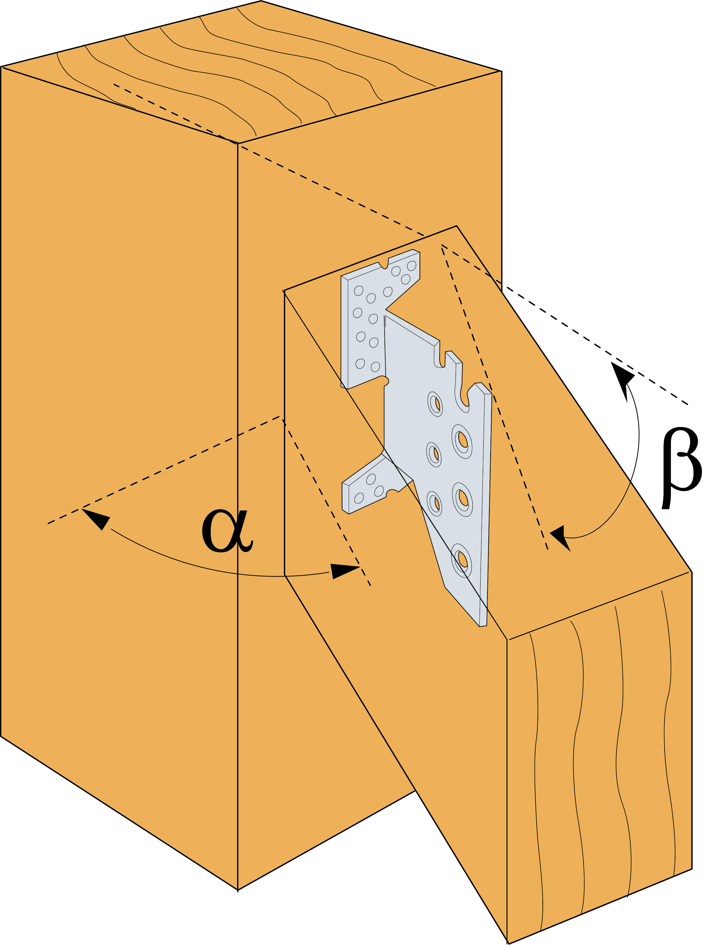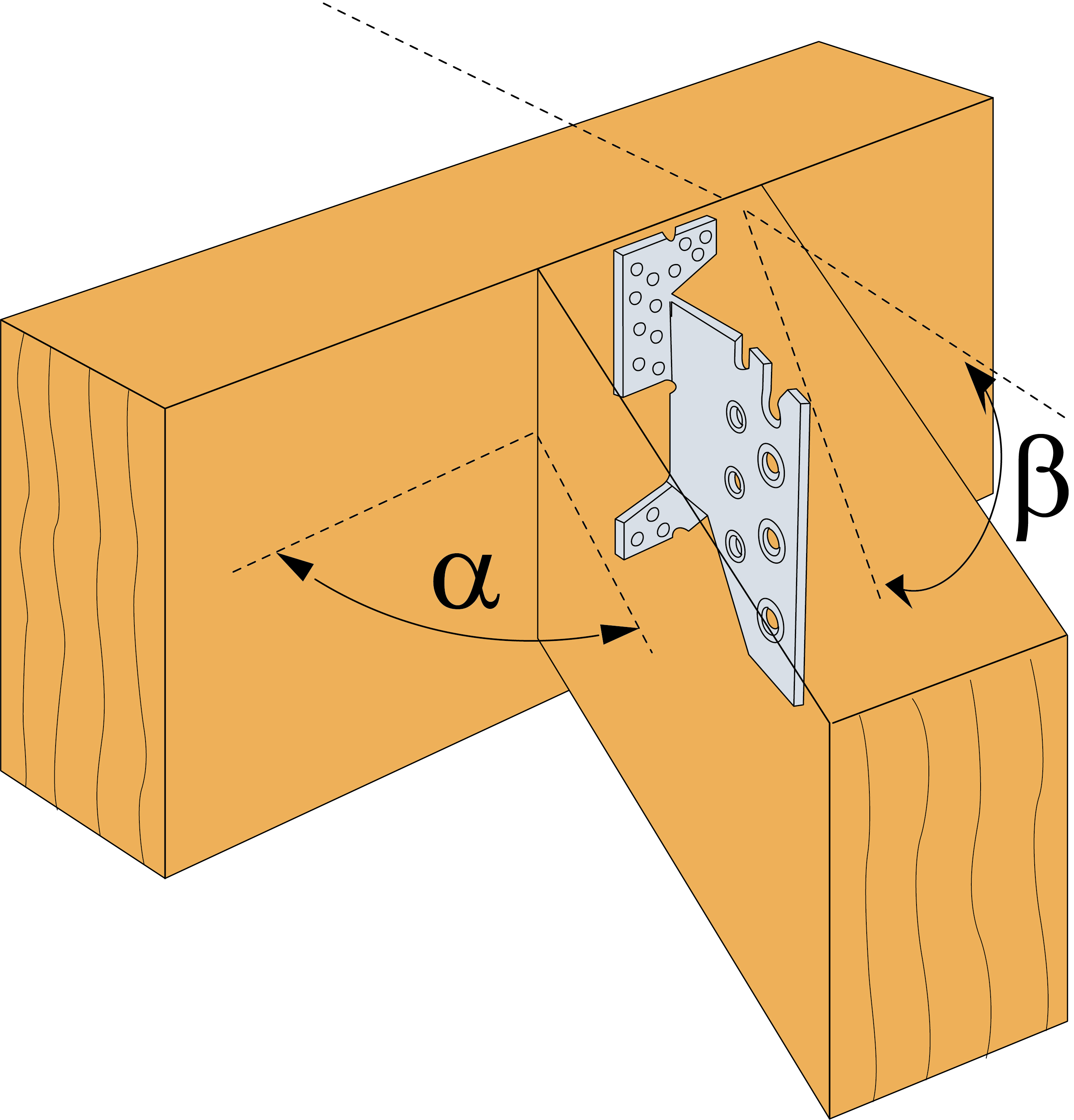 | Referentie | Karakteristieke waarden - Dwarsbalk op balk - volledige vernageling - met helling en hoek α=90° | ||||||||||||||||||||||||