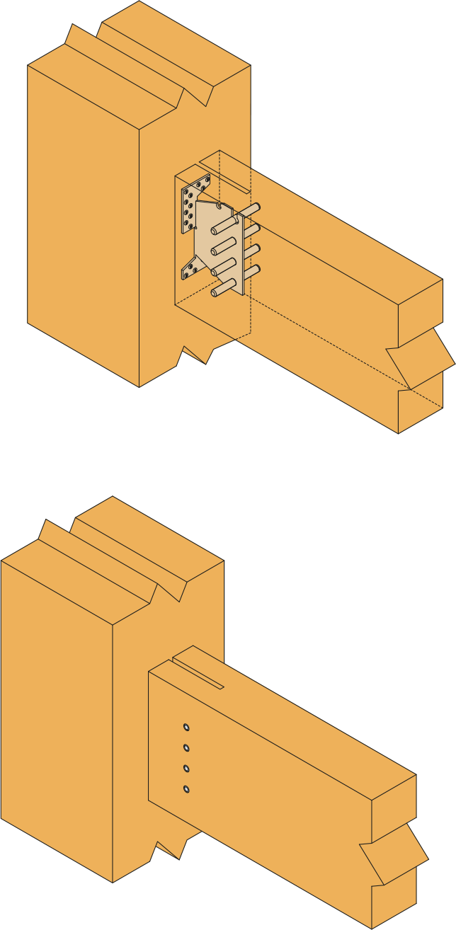Deze beugels met insteekblad maken een volledig onzichtbare verbinding mogelijk. De montage ter plaatse wordt vereenvoudigd door de inkeping in de kop. De in de fabriek geplooide modellen TUBSL of TUBSR zijn geschikt voor hoekverbindingen.