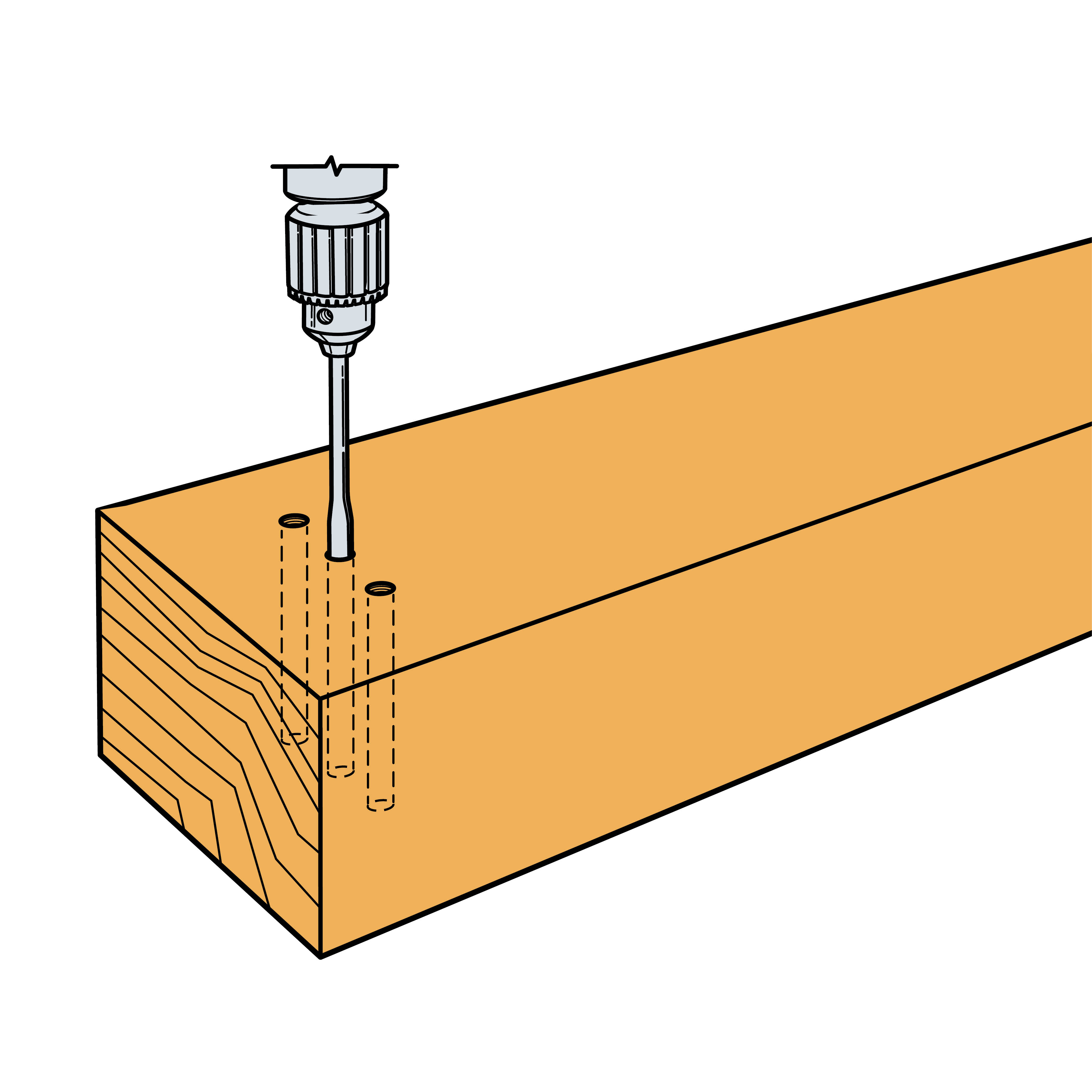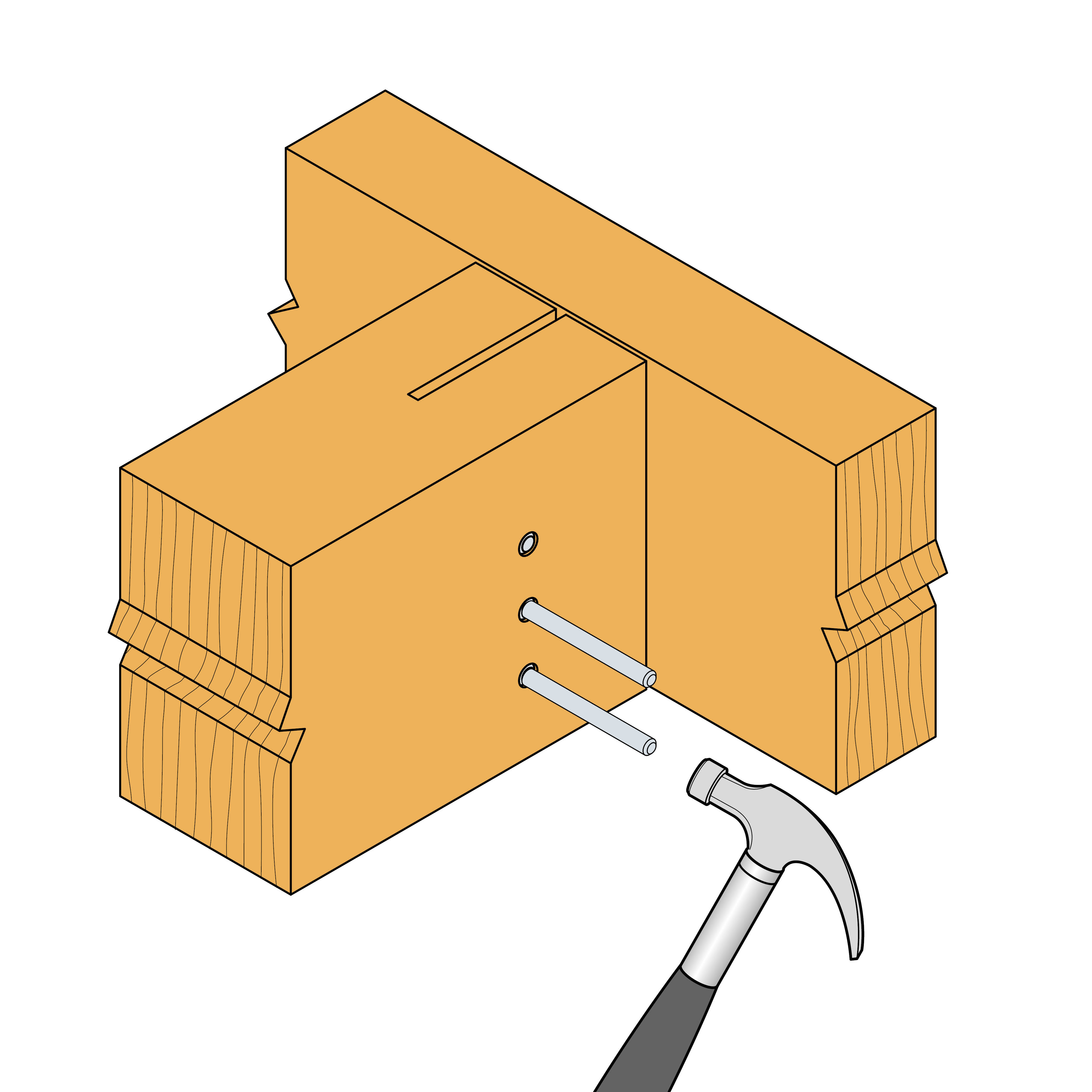 - Schroeven en pennen Ø 8 mm of Ø 12 mm.