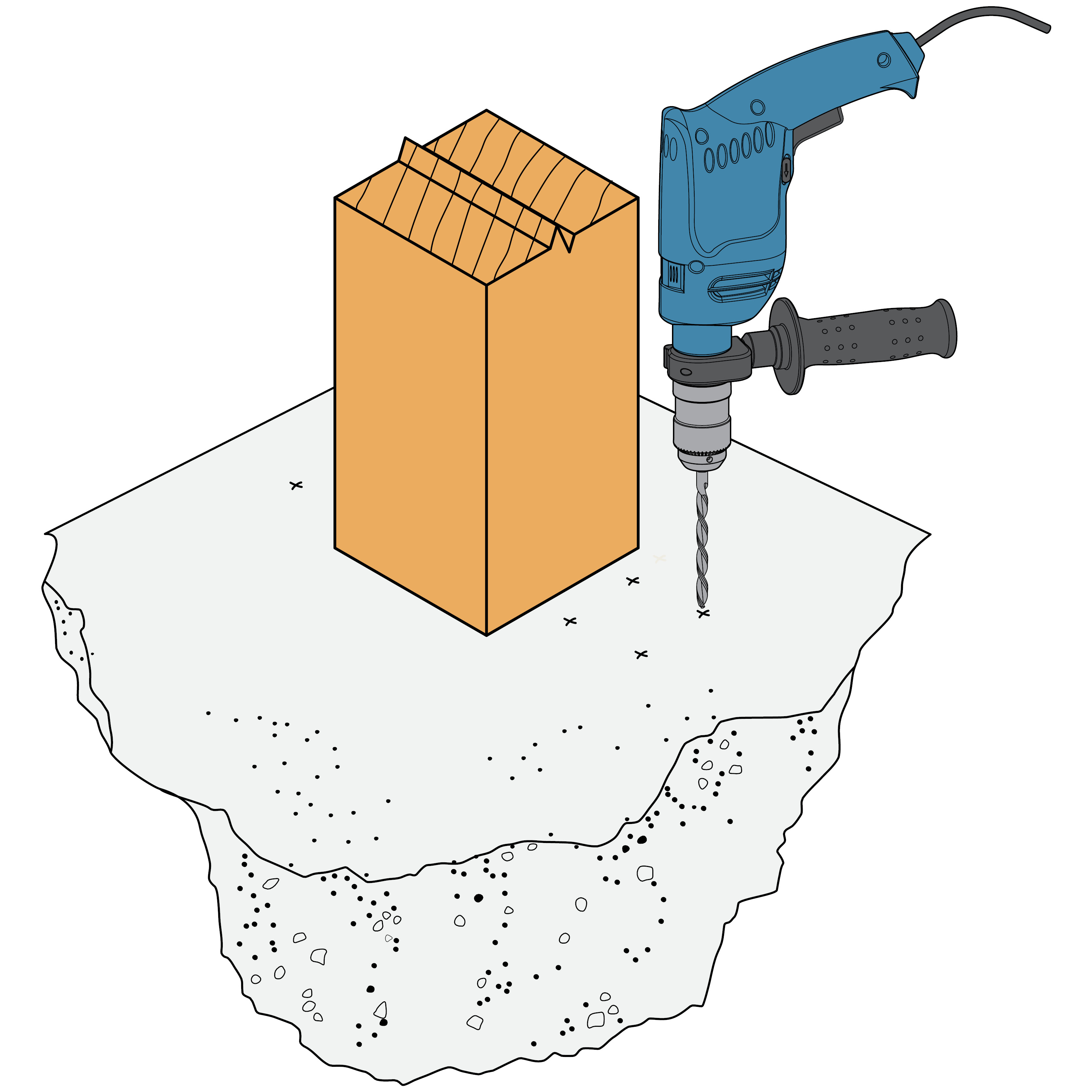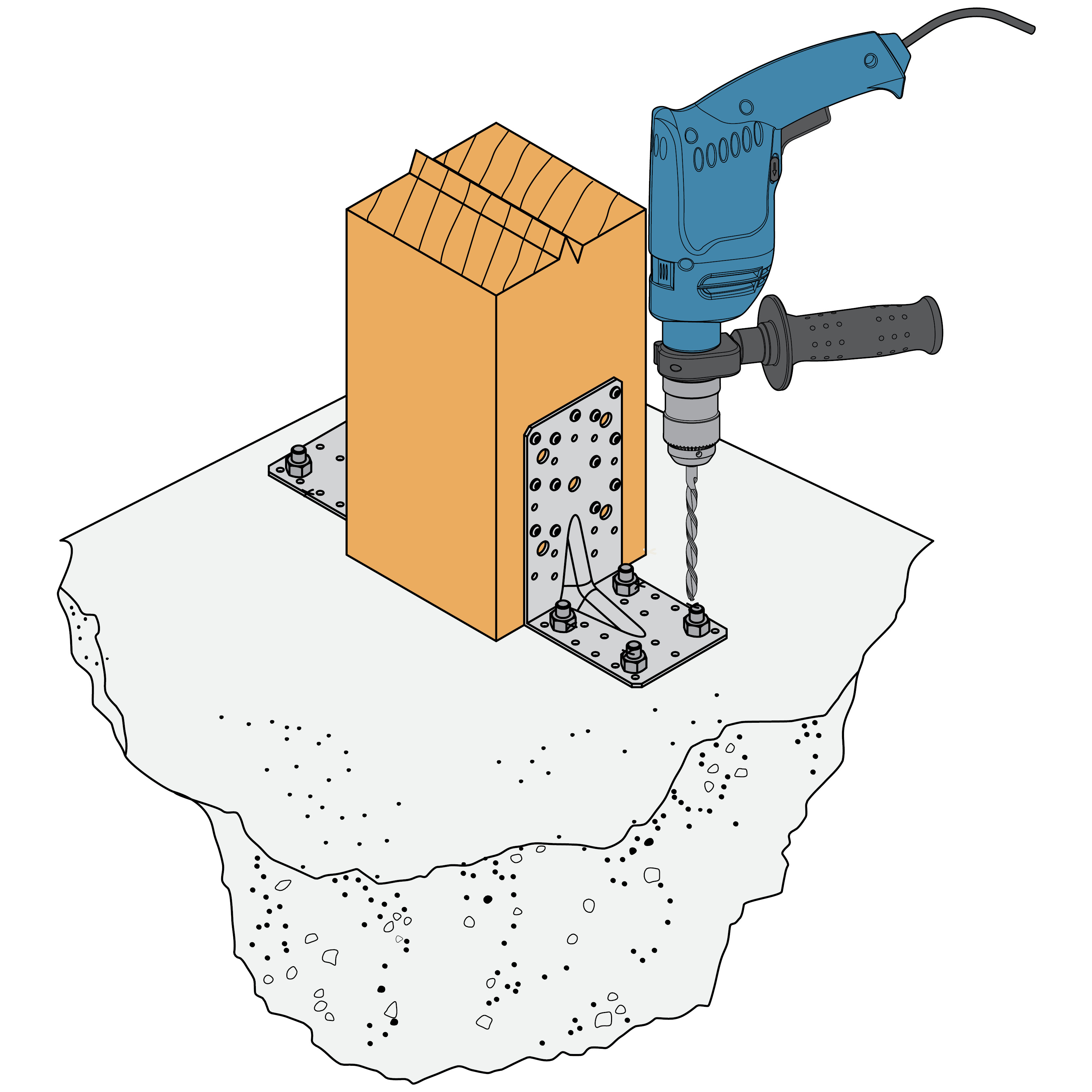 - Indien de ondergrond uit beton bestaat, moet het hoekijzer worden bevestigd volgens de aanbevelingen voor het plaatsen van de gekozen verankering.