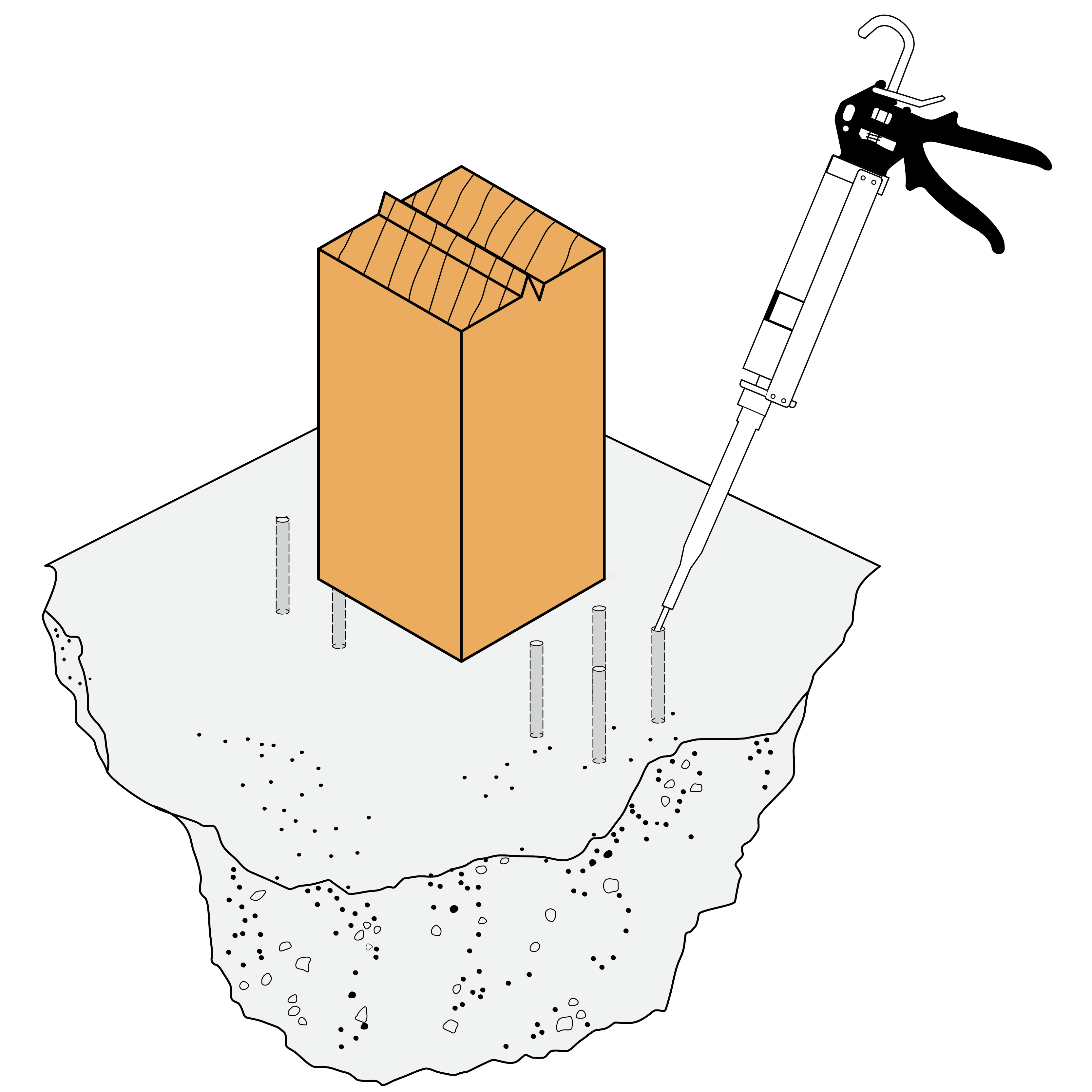- Chemische verankering : hars AT-HP + draadstang LMAS M10-120/25 of LMAS M12-150/35.
